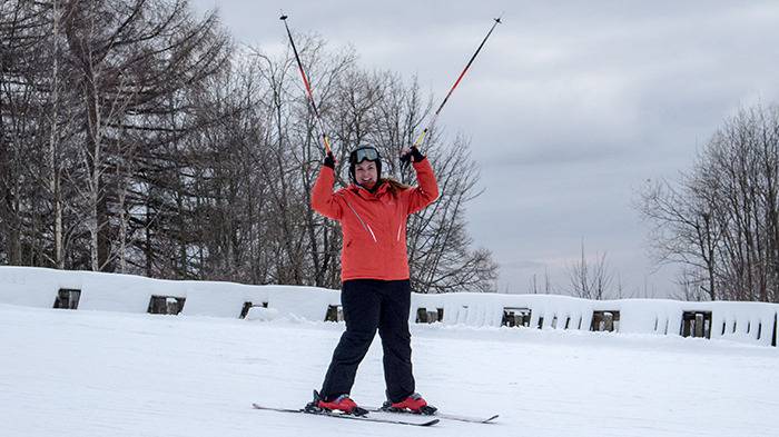 School Park: Teil der Gruppe ein Skier hochgestellt